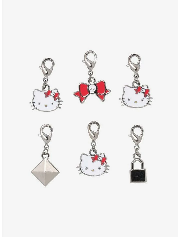 Hello Kitty isn’t always a sweetie. This set of shoe hang charms feature Hello Kitty’s edgy side! Includes charms of a pyramid stud, lock, skull bow and Hello Kitty making different facial expressions.