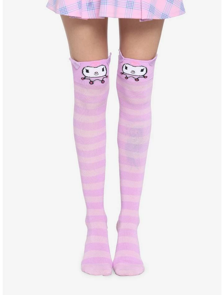 The devious Kuromi is here to help make your outfit cute, with a touch of mischief! This pair of knee-highs have lavender and pink stripes running down and Kuromi up top, complete with 3D ears.
